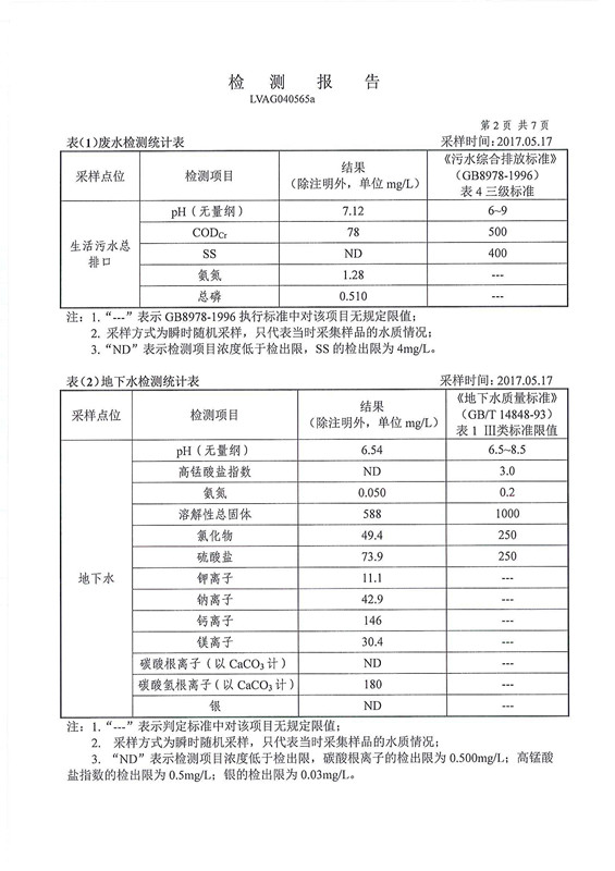 2017年廢水、地下水、廢氣、土壤、噪聲的檢測