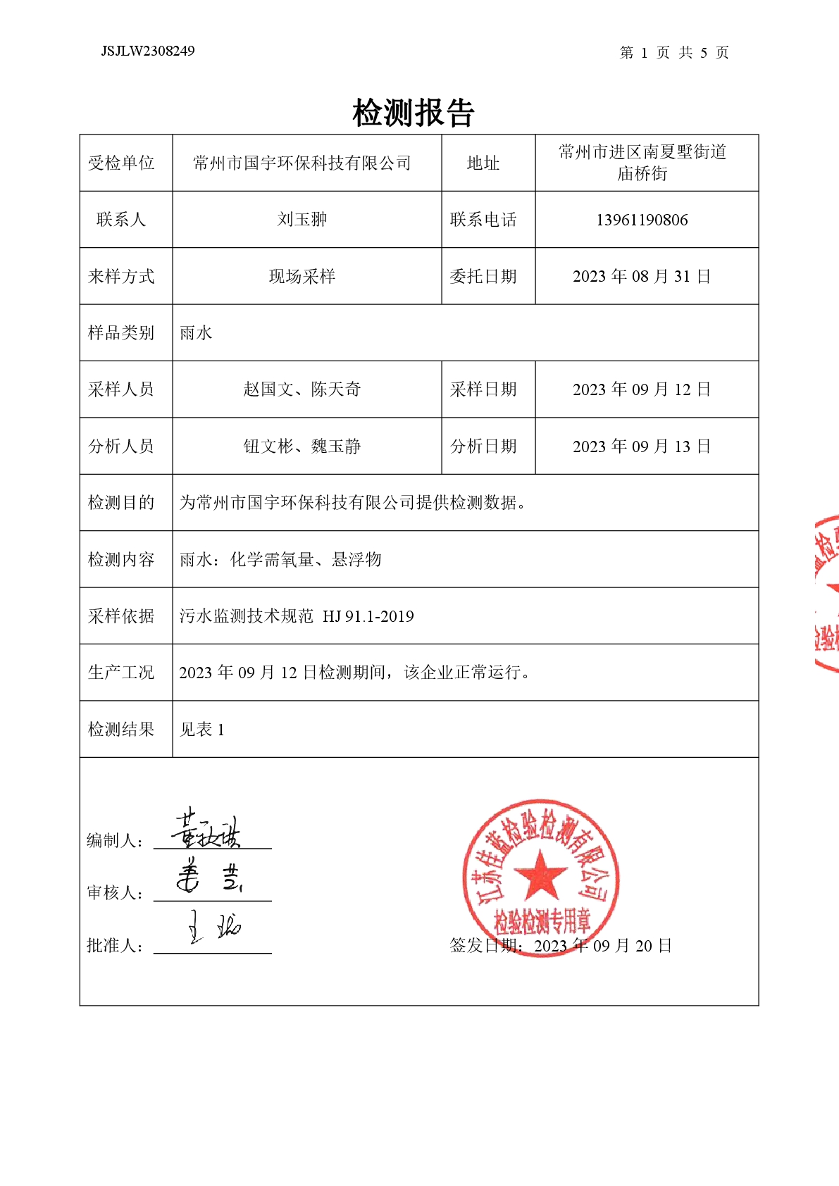 廢水、雨水、有組織廢氣、無組織廢氣、噪聲檢測報告