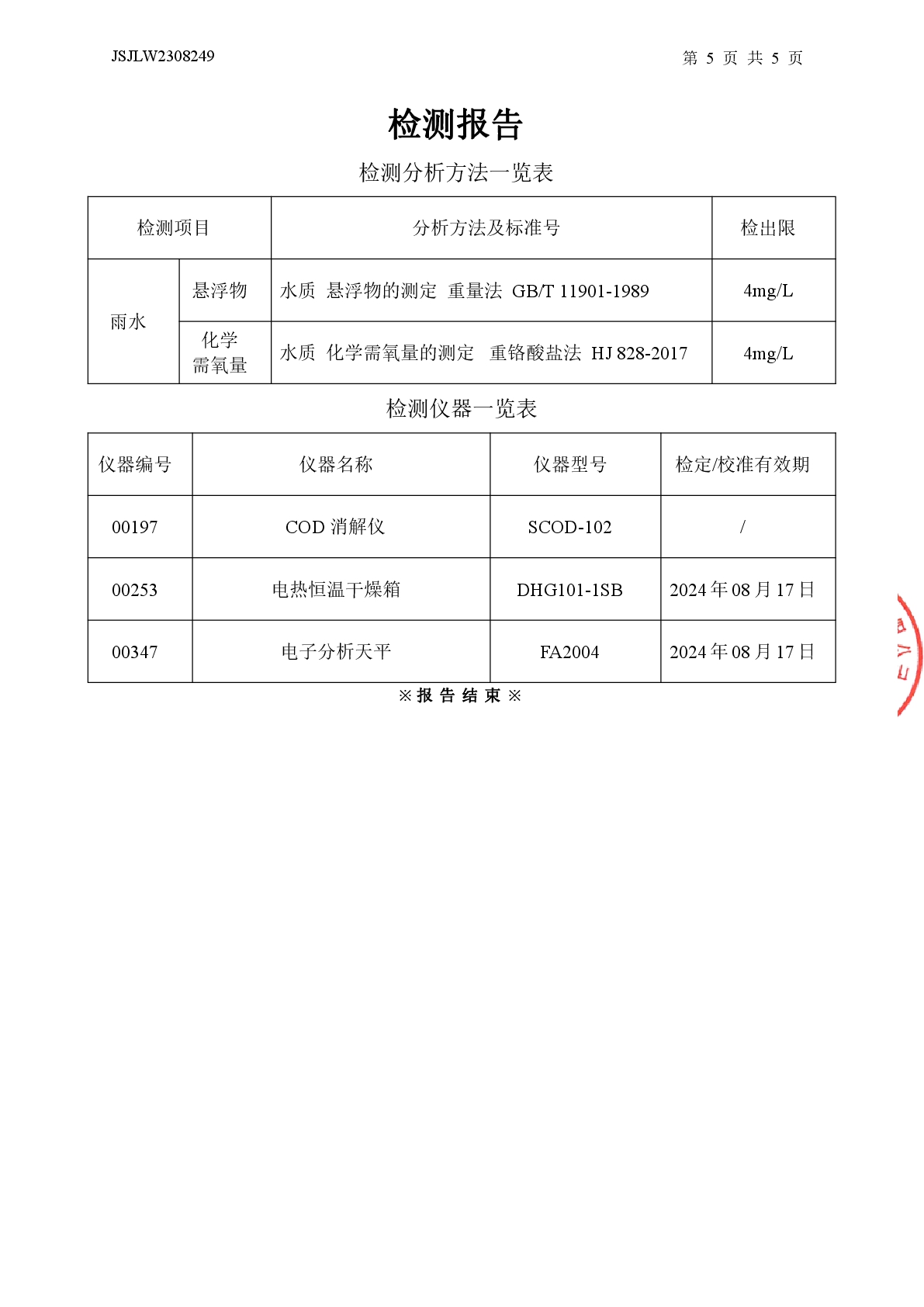 雨水:化學(xué)需氧量、懸浮物檢測